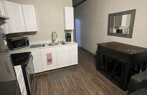 Enjoy lake and/or casino at this brand new cabin in small town Mead Oklahoma which is centrally located between Durant and Kingston Oklahoma. Blocks away from Lake Texoma Willow Springs Marina, boat ramp, picnic area, pavilion, beach, kayak rentals and boat slip rentals https://www.willowspringsmarina.com/ This is the perfect place to stay if you’re in the area for a fishing tournament, concert, family reunion, motorcycle ride, travel nurse, other business, or just wanting to get away. Just 5 miles to the newest West Bay Casino in Kingston and 12 miles to Choctaw Casino. Only 20 minutes to Texas for more great restaurants and shopping. Enjoy modern furnishings and appliances with 65" smart TV with Wi-Fi included. Outside picnic table, BQ grill, and chairs surrounding a firepit with Edison lights hanging above. This cabin on Lake Texoma is truly central to multiple popular destinations and our guests give great compliments about the neatness and cleanliness of the facility. There is plenty of room to park a boat. Sleeps 4.