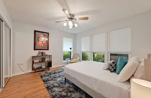 Escape to Red Door Ranch. A beautiful, sprawling ranch home nestled in the trees and rolling hills of Manchaca, Texas, AKA “Deep South Austin”. This super-chill, post-modern rancher is all about casual comfort and enjoying the outdoors in complete privacy. Situated on more than 3 acres of land, this 5 bedroom (2 primary bedrooms on opposite sides of the house) / 3 bath home will sleep 10 guests with space to spare and offers amenities galore within the confines of an 8' tall privacy fence around the property. During the day, enjoy feeding your group poolside at the cabana / bar or at the picnic area under a massive oak in the back yard. Cool off in the large, deep-water swimming pool, or unwind and rejuvenate in the soothing waters of the spacious hot tub. In the evenings, gather with friends and family under the large, poolside gazebo, complete with a relaxing fire table, or gaze at the dark sky and natural beauty of the quiet and rural setting around the backyard firepit. Enjoy watching the deer grazing beyond the game fence, and fall asleep listening to the resident coyote pack yipping in the distance. This rural oasis is close to everything. The ultra-trendy, South Manchaca Entertainment District is 10 minutes away and is home to some of the largest bars in Austin. Moon Tower, Armadillo Den, South Austin Beer Garden and Lustre Pearl are some of the attractions that are mere minutes from the house. Barton Springs / Zilker Park and South Congress are a 20 minute drive as are numerous bars, restaurants, grocery stores, and endless entertainment options in downtown Austin. Or explore points south and grab a cider at Texas Keeper or listen to some live music at Willie's Joint in Buda. Go slightly further afield and enjoy a lazy day floating the Guadalupe or take in F1 races at COTA. Don't miss the opportunity to experience “Deep South Austin” and Central Texas as it used to be.