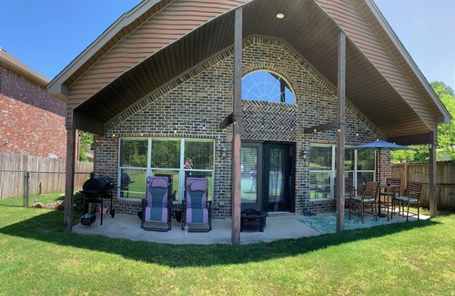 3 bed 2 bath brick home ready for a lake vacation. Located along the Ouachita River and Lake Hamilton for a variety of water activities to choose from daily. This vacation home is located in historic Hot Springs, Arkansas. Marvel Lake House includes a kids room with a boat bed to stimulate the imagination. Kids will enjoy watching salt water fish swim by as they begin with breakfast at the dining room table.. Marvel Lake House is directly located along the water for access to boating, swimming, and fishing in the backyard. Home has two additional bedrooms; Bedroom one is located within the loft area of the home and a king sized bed. Bedroom two has a queen sized bed with an on suite bathroom. Parking is limited; 3 cars maximum.