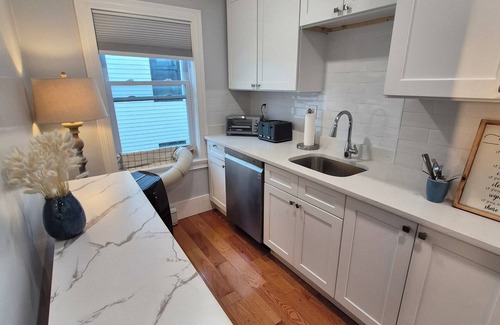 Welcome to this charming condo in Boston (with parking!). This peaceful and tranquil retreat is perfect for guests seeking a superb getaway in one of Boston's hottest locations. Totally renovated in late 2023, this cozy 2 bedroom includes 1 twin bed and 1 full bed, both mechanically adjustable with massage option, you'll have a restful night's sleep. The bathroom is equipped with a hair dryer and a bathtub for your convenience. Relax in the inviting living area or explore the city's vibrant attractions just steps to Broadway's famous shops and restaurants. Our place is also equipped with amenities like an iron, AC, heating, WiFi, 75" tv, and a massage chair! Enjoy all that Boston has to offer when you stay at our place. Located within walking distance to Boston's Seaport area and Boston Convention & Exhibition Center (BCEC), you'll find this part of the city to be a premium location. Off street parking included!