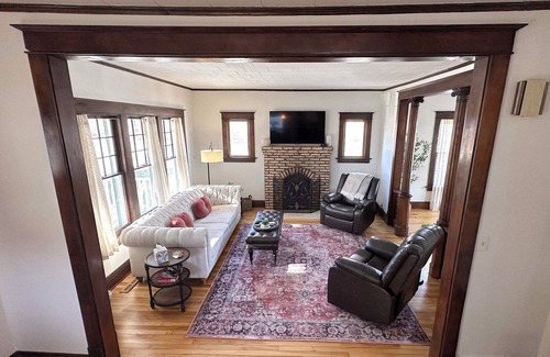 Relax and unwind in this beautiful 1920's home. Located just 3 blocks from Mayo Clinic's downtown campus. This home features space for 8 guests, 4 bedrooms, 2.5 bathrooms, living area with 2 recliners, dining room, on site laundry, fenced backyard, and a 2 car garage! This home has high speed 1G wifi along with over 150 cable channels to choose from. Just 2 blocks to connect with over 65 miles of walking and biking trails. Perfect for anyone looking for a comfortable and peaceful getaway!