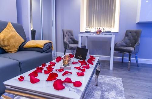 The luxurious suites comprises of a beautiful tiled bathroom, fully fitted high gloss kitchens with integrated appliances including: hob, oven and fridge-freezer. The apartments also benefit from super fast fibre optic internet, central heating, CCTV, on-site maintenance and free parking. Furthermore a spacious living area that benefits from outstanding LED mood lighting, feature walls as well as large smart 4K LED TVs; perfect for those quite nights in.
