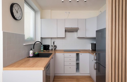 Metro Stokłosy Comfort Studio is a cozy apartment featuring a living room with two sofa beds and a kitchenette, a bathroom, and a balcony where guests can relax and enjoy a morning coffee or an evening glass of wine. Guests have access to various amenities, including free WiFi, a TV, a washing machine, an iron, a hairdryer, a fridge with a freezer, a dishwasher, an induction stove, a coffee maker, a toaster, and kitchen utensils. There is also a parking space available in the underground garage.