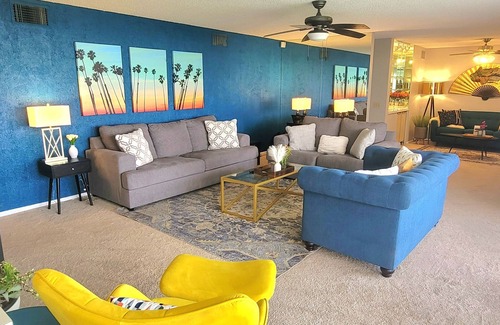 Mid-Century 2bd/2ba Condo Sleeps 8, on Golf Course is located in Indio. Mid-Century 2bd/2ba Condo Sleeps 8, on Golf Course provides accommodation, featuring Parking, TV, Bedding/Linens, among other amenities. This Condo features Parking, TV, Bedding/Linens, to make your stay a comfortable one.