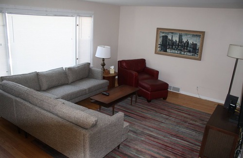This 2 BR duplex lower apartment is located in Milwaukee's Riverwest neighborhood, 2 miles directly north of downtown. It is furnished with many vintage mid-century furnishings. There is a garage space for your use during your stay, and ample street parking right in front making it easy to come and go. The kitchen has dishes, pots, pans, and all the utensils you will need during your time here.