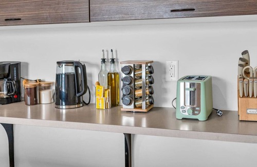 Whether you're prepping a quick bite or a full meal, the fully equipped kitchen has you covered. Enjoy stainless steel appliances, polished countertops, and modern cabinetry—perfect for cooking in style.