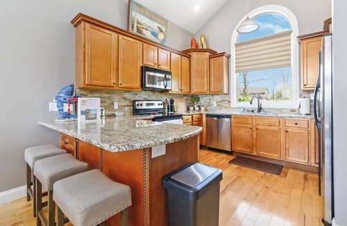 Beautiful, large lake house, overlooking Lee's Ford Marina on Lake Cumberland! Definitely View-Nique!!! Spectacular views and access off all three large decks with patio furniture & large table for enjoying your morning coffee or meals with family . ALL but one bedroom have their own deck access. Fully furnished over 2,800+ sq feet, kitchen has blenders, coffee maker and keurig, enough Fiesta Ware to serve 12 people. There is gas grill for your family BBQ. The main floor consist of living room/dining combo, kitchen, bedroom with king size bed, & one full bath. Lower level has utility room with washer & dryer, full bath, bedroom with a queen size bed with access to deck, family room with Smart TV for streaming and card table, There is also a full size tri-fold memory foam mattress topper in a closet that can be pulled out for guests. The large sofa/sleeper with oversized ottoman can also provide extra sleeping downstairs. Upper Level has two very large bedrooms with walk-in closets that share a full bath. The upper master bedroom has its own private deck overlooking marina. WIFI, Internet Access, smart TV's minutes away from Sorrento's and Lee's Ford Marina, which the house over looks. We are private owners and not a management company, PLEASE be mindful and respectful of our place so we can continue to share it with others. NO PETS, NO SMOKING OR VAPING INDOORS AND NO EVENTS ALLOWED.