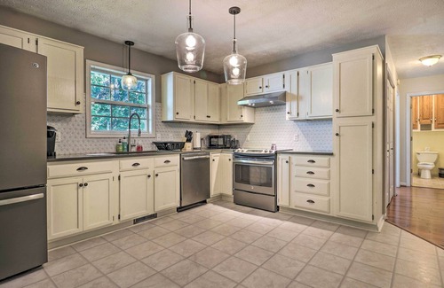 Experience serene birdsong, gorgeous sunrises, and a secluded, private escape to the Smokies when you stay at this 3-bedroom, 2-bathroom Mills River vacation rental. Situated just a short drive to Asheville, this house is ideal for travelers looking for an action-packed itinerary full of visits to sites like the Biltmore Estate or explorations in Pisgah National Forest. Wherever the day takes you, look forward to returning to this cozy abode to sip tea on the porch or warm up by the fireplace.