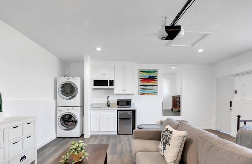 Enjoy easy access to everything from this centrally located place. This newly renovated guest/mother-in-law suite is perfect for smaller-sized groups. It's equipped with a washer, dryer, wifi, smart tv, compact kitchen, bedroom, bathroom, private entrance, designated parking spaces, and self-check-in. The stay is located only mins away from Disneyland and Anaheim Convention Center!