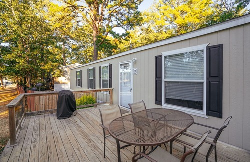 This mobile home is conveniently located near our restaurant, camp store, basketball court, disc golf course, swimming pool, laundry mat, and courtesy dock!