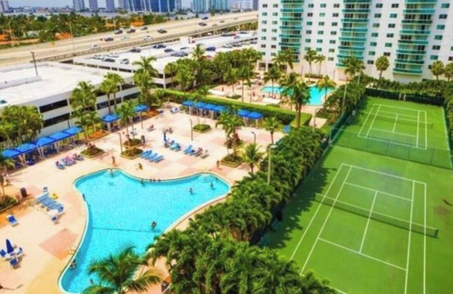 5 min to the biggest mall of Miami, Aventura. Valet or self-parking, gym, swimming pool with private cabanas, coffee shop, mini market, hairdresser, barbecue, pool table, tennis courts, laundry on each floor, Wi-Fi in the unit for laptop-friendly workspace
