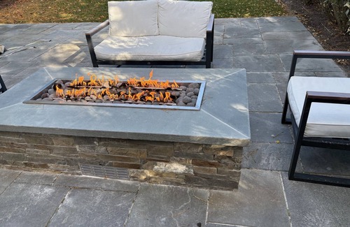 Large, private yard with masonry firepit, outdoor fridge and 5 burner grill. Outdoor dining table with comfortable seating for eight. Ping pong table, corn hole and croquet!