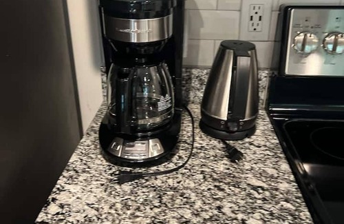 Inside the apartment, you'll find all the amenities you need for a comfortable and convenient visit. The space is equipped with AC and heating to ensure a pleasant temperature regardless of the weather. A fully functional kitchen is available for your culinary adventures, complete with cooking basics, dishes and silverware, a dishwasher, a microwave, an oven, a refrigerator, a stove, a toaster, and a coffee maker. Feel free to enjoy your meals at the dining table or relax in the living area while watching TV. Additionally, wireless internet is provided for your convenience.
