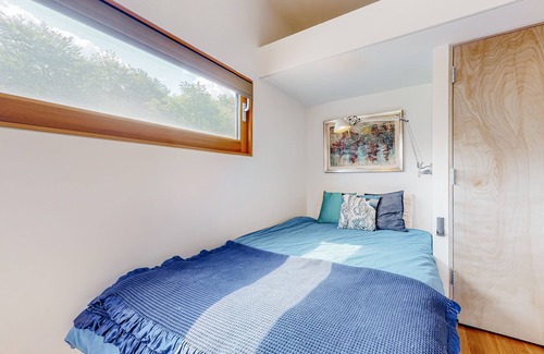 In addition to the three serene bedrooms upstairs (one with its own en suite bathroom), there's a home office where you can sit down at the desk, log onto the complimentary WiFi, and write or take calls with an inspiring view across the mountains.