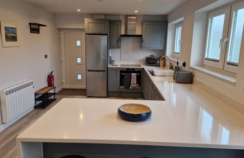You will walk into an open plan, fully equipped kitchen-diner-lounge. The property has two bedrooms, the master bedroom with a king-size bed, wardrobe and chest of drawers and a twin room with two single beds, wardrobe and dressing table. The bathroom has underfloor heating, a walk-in shower, heated towel rail, toilet and his and hers basins.