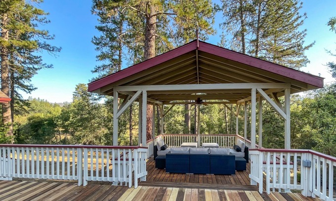 This ranch style house is the perfect nature retreat. Located near CA-49, 12 miles from Bass Lake and approximately 19 miles from Yosemite South Gate. Surrounded by 5 acres of wildlife and trees, there is plenty to explore on this private property. Experience real quiet and peace with the beautiful Mountain views from every part of this house. The home itself is fully stocked with premium products and amenities for any of your needs.