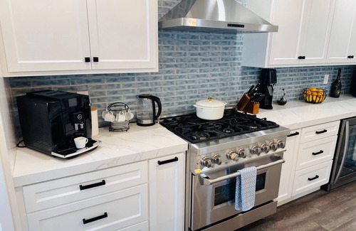 Location, Location, Location! Best spot in Monterey for work or play! Walk to the beach and fisherman's wharf in 10 minutes, or downtown shops, the weekly farmers market, music venues and restaurants in only 5 minutes! 1 block from Monterey Conference Center! This bright, newly remodeled, modern coastal home offers a serene and brilliant escape for guests. You will enjoy cooking in the well-equipped chef's kitchen which has a 36" gas stove, large refrigerator, espresso machine, air fryer, and everything you need to make a healthy meal. With 2 cozy bedrooms featuring a dreamy memory foam king bed, a full bed, and a couch that pulls out to make another full bed for a guest, everyone will get a good night's rest to be ready for their next adventure. Soak your cares away in our private 5 person hot tub oasis. There are 2 full bathrooms, one en-suite in the master bedroom with a stone shower and double vanity, and the other in the hall equipped with a bidet and bathtub. The relaxing deck can be enjoyed day or night and has a peek of the ocean, a sun umbrella, a firepit, and a gas grill. If you are traveling with your furry friend, we have a pet-friendly fully fenced back yard to keep them safe if you will be out for the day. There is ample free off-street driveway parking for up to 3 vehicles. This wonderful property ensures a comfortable stay. We hope you will come and enjoy our place and all that Monterey Peninsula has to offer.