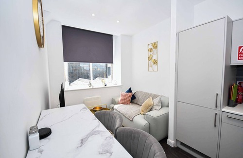 The stylish interior offers a welcoming retreat for up to 2 guests to live in comfort. The cosy open plan living area includes a modern, fully equipped kitchen with all the essentials to prepare home-cooked meals, a dining table, a comfortable sofa, and a smart TV. Make the most of high-speed broadband throughout the apartment, perfect for those that need to work, and stay connected on social media. The compact double bedroom features a plush bed dressed in fresh hotel-quality linen, along with ample storage for your clothes and personal items. The modern bathroom is fitted with a powerful shower and comes complete with complimentary toiletries and soft, fluffy towels.