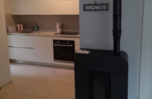 - a large, modern kitchen equipped with an induction hob, extractor hood, dishwasher, oven/grill, large refrigerator, toaster, Lavazza A Modo Mio coffee machine, microwave, kettle, blender, and everything you need for cooking and dining (including a first supply of salt, pepper, oil, vinegar, sugar, various spices, dish and dishwasher detergent, paper towels, etc.)