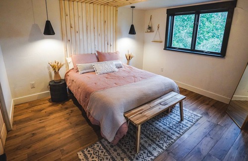 Upstairs you will find a large loft with king bed and half bath. There is a small reading nook and seating area to sit back and enjoy a good book.