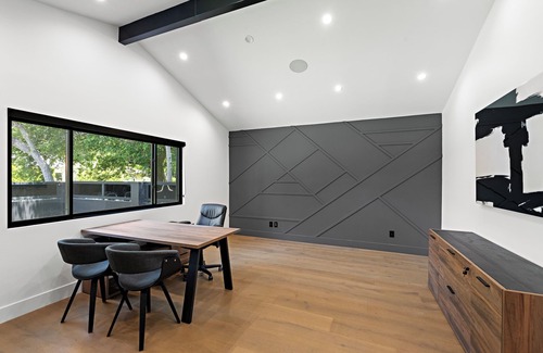 Enjoy fresh designs with maximum impact in this newly remodeled 5 bedroom 5.5 bathroom home. Indulge in soaring 16-ft ceilings, a state-of-the-art smart-home system, speakers in all rooms, and new Thermador appliances. Outside find an entertainer's paradise, complete with a heated pool, spa, dining, and deluxe BBQ. The home boasts 2 gated driveway parking spots and 2 garage spots with a Tesla charging station. 10 minutes from Universal Studios, explore LA's trendy Valley Village neighborhood.