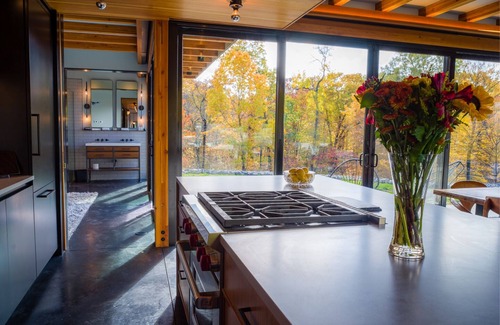 Modern Glass House with Pool & Catskill views in Hudson Valley is located in Hudson. Modern Glass House with Pool & Catskill views in Hudson Valley provides accommodation, featuring Bedding/Linens, Wellness Facilities, Fireplace/Heating, among other amenities. This House features Bedding/Linens, Wellness Facilities, Fireplace/Heating, to make your stay a comfortable one.
