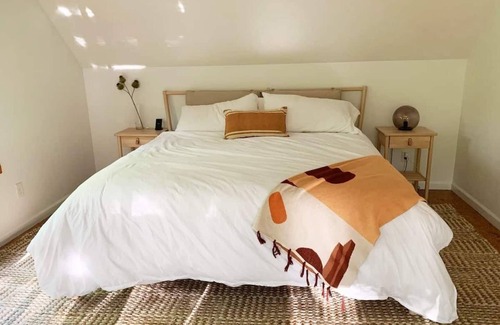 Surrounded by woods, our eco-conscious, 3-bedroom, 2-bathroom home is a modern, comfortable space for families, couples, and friends.