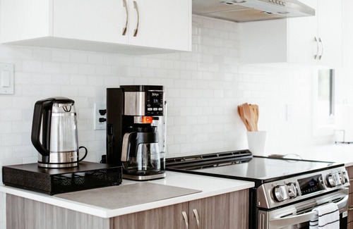 Step inside to a warm and inviting open-concept living space, where rustic charm meets modern convenience. The fully equipped kitchen with sleek countertops and ample storage makes it easy to prepare home-cooked meals, while the cozy living area is perfect for movie nights or curling up with a good book. In-suite laundry ensures you have everything you need for a relaxed, carefree stay.