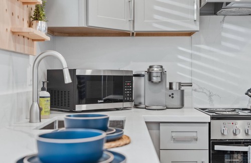 The kitchen is fully equipped for those who like to curate their own meals, Keurig coffee/Latte maker and a microwave for those yummy leftovers.