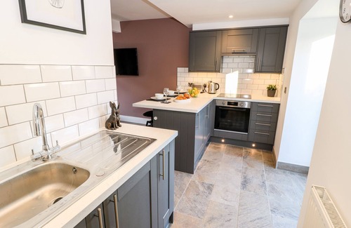 Amenities: Gas central heating. Electric oven, ceramic hob, microwave, fridge with freezer box, washing machine. Smart TV, WiFi. Fuel and power inc. in rent. Bed linen and towels inc. in rent. Roadside parking on first-come, first-served basis. Enclosed front courtyard with furniture, enclosed rear garden with patio and furniture. Sorry, no pets and no smoking. Shop and pub 0.1 miles. Note: The staircase down to the lower-ground-floor utility room is steep with low ceilings.