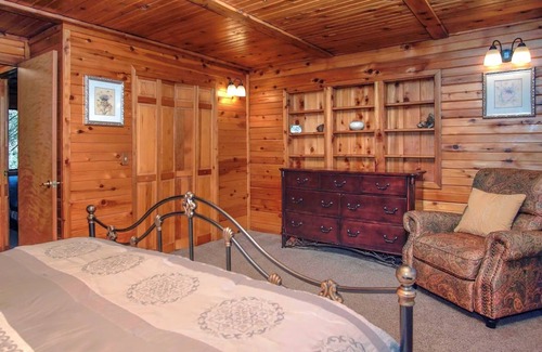 Log Cabin in style, but upgraded to today's quality standards. Every room glows warmly of the unique feeling of wood plank walls and ceilings. Kitchen upgrades include granite counters, Stainless appliances, spill-proof floors, and all new cook wear. Two king and three queen high quality mattresses each in their completely private bedroom. All 14 windows are screened to allow you to enjoy cool evening mountain breezes.