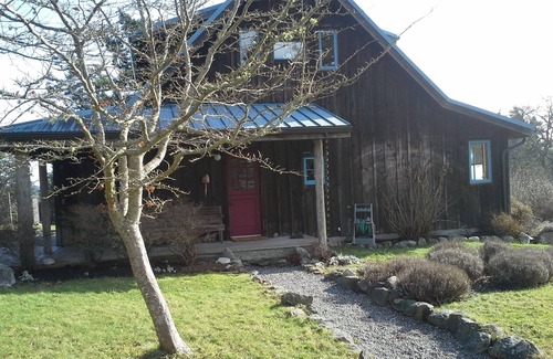 A quiet retreat on 5 acres, our house is the perfect setting to relax and enjoy the Islands. Stroll among the stately Garry Oaks and old-growth Douglas Firs while admiring views of Mt. Constitution and Mt. Baker. Enjoy meadow wildflowers in the Spring, turning leaves in the Fall, or bask on the deck in the warm Summer climate of the San Juans. Whale-watching by Lime Kiln Lighthouse or long walks on South Beach are minutes away by car. We hope you fall in love with the Island just as we have. Two bedrooms and a twin daybed make this the perfect rental for a small family getaway. Our house has two bathrooms: one with a claw foot tub and one with a shower. Also equipped with a dishwasher and wood stove. Hot tub available for use out in the meadow.