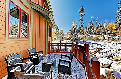 Take in views of the Continental Divide from the deck, furnished with seating for six. In the evenings, soak in your private hot tub on the patio.