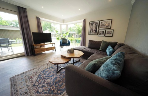 Velthorst 4 stands for a comfortable stay with everything you need. The chalet is on the ground floor and suitable for 4 persons. The common room has a dining area, a sitting area with television and a kitchen with a dishwasher, water boiler and refrigerator. The chalet has 2 bedrooms with 2 single beds or a bunk bed. The bathroom has a shower, toilet and washbasin. The chalet is adjacent to a garden with a furnished terrace. You can park 1 car at Velthorst 4 and you can use the Wi-Fi for free.