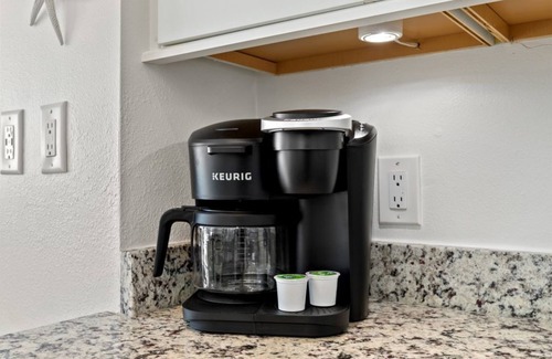 We just remodeled the kitchen! There is also new tile throughout this spacious condo. You'll also find little conveniences like full size Keurig/Coffee pot with one cup option, games and books.