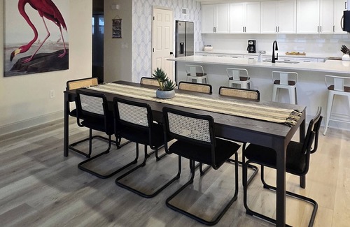 Kick back and relax in this calm, stylish space just feet away from the lake. Imagine sipping on your morning coffee from the back pool deck, watching the birds, turtles, and yes alligators as the sun comes up. Soak in the beautiful, peaceful, and natural surroundings and views.