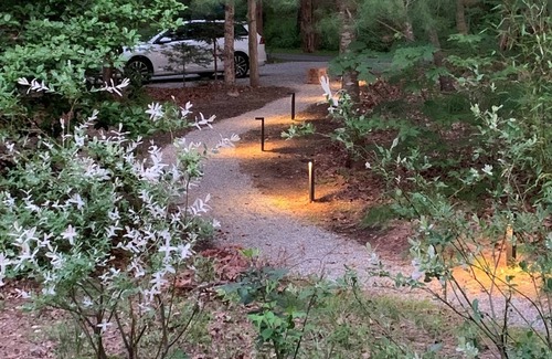 Accessibility - We don't want to mislead on this topic. There are some accessible features to our home but they are not consistent. The driveway has room for parking and wheelchair exit, but it is 3/8" crushed stone. The pathway leading to the house is lit, but it is also 3/8" crushed stone. There are two steps to get onto the ground floor porch and then one has access to the entire ground floor (porch, living/dining, full bath, kitchen, laundry). The doorways meet ADA compliant widths. The kitchen is not ADA compliant in terms of counter height (36") or clearance under counters. There is a Japanese-style ground floor bath where one can roll right into the shower. The vanity is wall-hung and has 11” of floor clearance but is not fully ADA compliant. There are no grab bars by the toilet or shower. The sofa is in fact a large day bed, so two people could sleep here in lieu of going upstairs to the bedrooms.