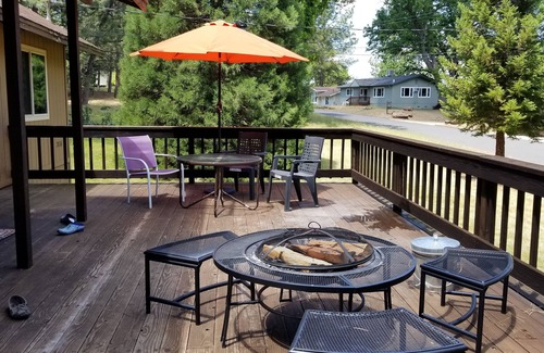 Charming 2 bedroom, 2 bath, with large spacious indoor area with two huge outdoor decks, one in front of the house and one in the back. Walking distance to the refreshing lake beach, short drive to the other lake beach. Great walking neighborhood. Short distance to Yosemite park, gated access, new carpets, new paint, new floors, new furniture. Very pleasant and super enjoyable way to recharge in the confines of the great outdoors.