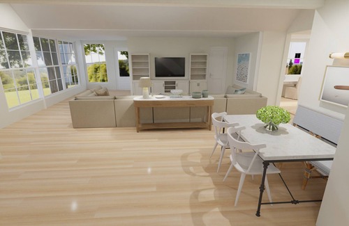 Unwind in the spacious living room, designed for relaxation and connection. Sink into plush furnishings and enjoy entertainment on the smart TV. High-speed Wi-Fi is available throughout the home, keeping you connected.