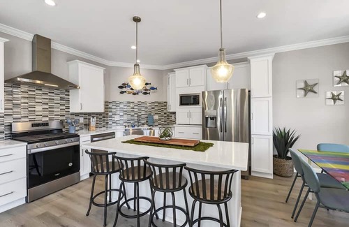 This gorgeous villa is practically brand new. 3 large bedrooms including one with a bunk bed (full and twin) and pull out trundle (room sleeps 4), one with a queen bed, and the primary with a king bed. (Rooms sleep 8). The large open kitchen/dining/living area is a great space for friends and family to be together. The kitchen will be fully stocked with dishware for 8 settings. A keurig coffee machine will greet you on those vacation mornings with basic coffees provided. In unit laundry is available for guest use. There is a one car garage attached. The front deck is a great spot to hang out and includes patio furniture for relaxing. An active bald eagle nest is within view of the deck. The clubhouse is 100 feet away and includes a pool, gathering area, workout area, and saunas. From the front deck you can listen to the lake Erie waves crash against the beach. This is a great spot to boat with Sandusky Bay and Lake Erie both accessible from the marina. Cedar Point can be seen from Bay Point and is a short 30 minute car ride or 10 minute boat ride away. The Lake Erie island ferry boats are also very close. The ferries to Put in Bay /South Bass Island are 15 minutes away while the Kelleys Island Ferry is only a 2 minute drive north. Around the corner is the most photographed lighthouse in the great lakes, the Marblehead Lighthouse. Find yourself shopping and dining at quaint downtown Marblehead. Your host is a local Realtor and can guide you on fun and exciting activities to do during your stay. Welcome to Vacationland!