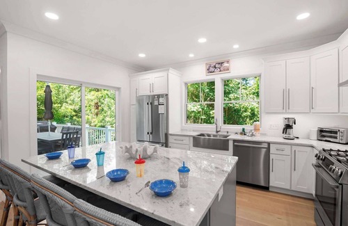 Discover the epitome of sophisticated seaside living at Fresh Tide Haven, a newly constructed home in Harwich just 1 mile from Main Street. With its sleek modern finishes and high-end furnishings, this exquisite vacation home is meticulously designed to enhance your getaway experience.
