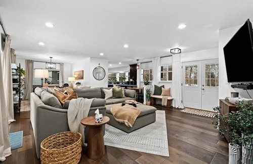A sprawling 3-bedroom, 2.5-bathroom ranch home designed for relaxation, productivity, and entertainment. With spacious bedrooms, two dedicated workspaces, a heated garage with a private gym, basement game room, and pet-friendly accommodations, this home is perfect for families, business travelers, and groups. The main living area features a comfortable sofa, accent chairs, a 65” Smart TV, and an indoor fireplace (decor only), while the basement lounge and game room offers a Smart TV, cozy seating, a putting green, and a dedicated workspace.