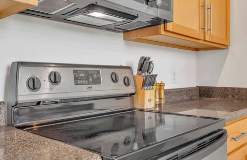 Sit down to relax and watch TV on the 65" 4k smart TV or enjoy your coffee under the warmth of the Lights. The kitchen is fully-equipped with pots, pans, and basic cookware. Complementary coffee (regular + decaf) and tea is included with electric kettle and carafe. Dining for 6 while looking out from the top floor windows is sure to be memorable.