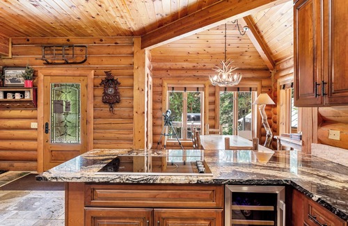 This beautiful log cabin is nestled in the woods only minutes from Breckenridge Ski Resort. Enjoy world-class skiing, golf, snowmobiling, hiking, biking, and fishing from your doorstep. Recharge afterwards in front of the living room fireplace, stargaze from the deck by the gas fire pit, or relax in the large hot tub!
