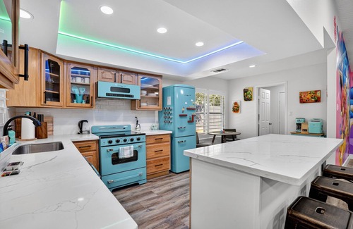 or cook together in the fully equipped kitchen. The private backyard and cozy