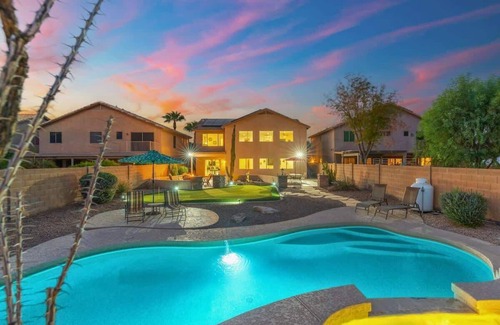 Welcome to the Cozy Saguaro 🌵 This beautiful home in Phoenix is the perfect place for family gatherings, work retreats, or relaxing getaway. With unobstructed views of South Mountain, the outdoor space is perfect with a resort-style heated pool & spa, putting green, and fire pit. Enjoy full access to 2 game rooms with pool table, arcade, and board games! Just a short drive from fine dining, shops, PHX Airport, golfing, and top attractions, this home offers the ultimate in comfort and relaxation.