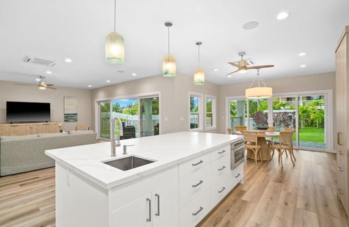 Unwind in 4 serene bedrooms—three with luxurious king beds and one featuring a queen-over-king loft bed—ideal for families, friends, or multi-generational stays. Every element has been carefully curated, from sleek quartz countertops and in wall AC units in each bedroom, living room and kitchen area.