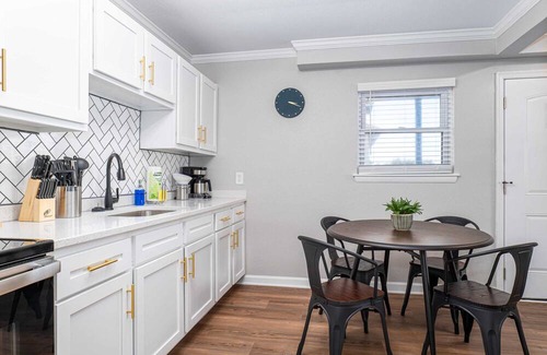 This unit can hold up to four guests, providing comfortable linens, your basic bathroom necessities, along with a 50' Roku tv to enjoy! There is also high speed Wi-Fi, and a shared laundry space on the property.
