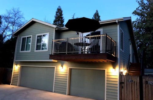 Kick back and relax in this quiet, stylish home with a deck and a sunset view. This is a secondary dwelling unit built in 2018 above the garage. High-end finishes and featuring 1 bedroom with king size bed, full kitchen, bathroom w/tub & shower, and living room with queen sleeper sofa. Historic Old Folsom is within walking distance and has an old western charm that offers live theater, Gold Rush history, superb restaurants, cafes, bars, dancing, unique shopping, ice cream and chocolate shops.