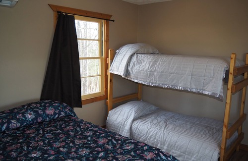 Each of the cabins have their own unique style! Four of the cabins (#1 ,#5, #10, and #12) have bedrooms and the other two (#9 and #11) are "studio cabins". The bedroom in Cabin #5 is explicitly set-up for younger children. Each of the cabins have their own private bathroom with a toilet and a shower or bathtub / shower combination. Cabins #1 and #5 each have a combination bathtub / shower and the other 4 cabins (#9, #10, #11, and #12) have showers. Cabin #11 is explicitly set-up to be wheelchair accessible. (Please note that it is still necessary for guests in wheelchairs to travel approx. 250 feet from the parking area to the cabins.) All of the cabins have a small "kitchenette" in them that consists of a sink, mirror, countertop, and coffee maker. (There are no sinks and mirrors in the bathrooms.) Ground coffee and filters are provided as well! Each of the cabins also has a small dining table and 2 chairs.
